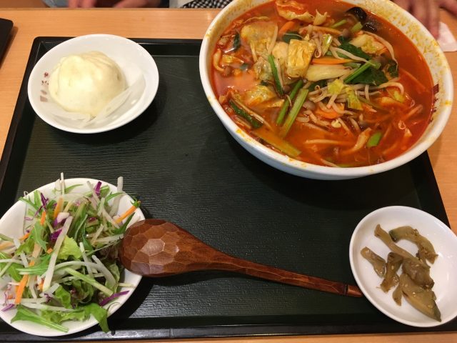 次に、相方の頼んだ激辛野菜たっぷり湯麺セットが運ばれてきました。