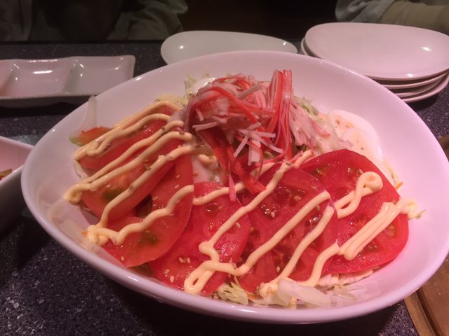 大人数で分け合いやすい大皿でのサラダもおいしいですよ。上記:照照(てるてる)サラダ