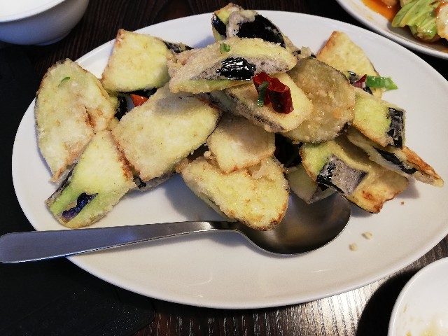 ナスのスパイシー山椒香り揚げです。ナスの揚げ具合・塩加減が最高!
