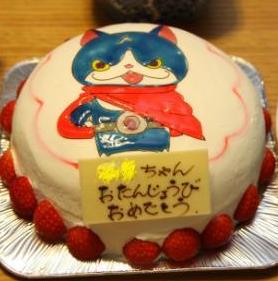 特注の誕生日ケーキは、イラスト持参すれば絵も描いてくれます。