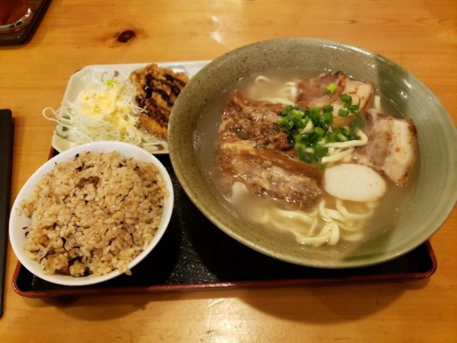 沖縄そば&ジューシー(炊き込みご飯)&トンカツ セットにしました。