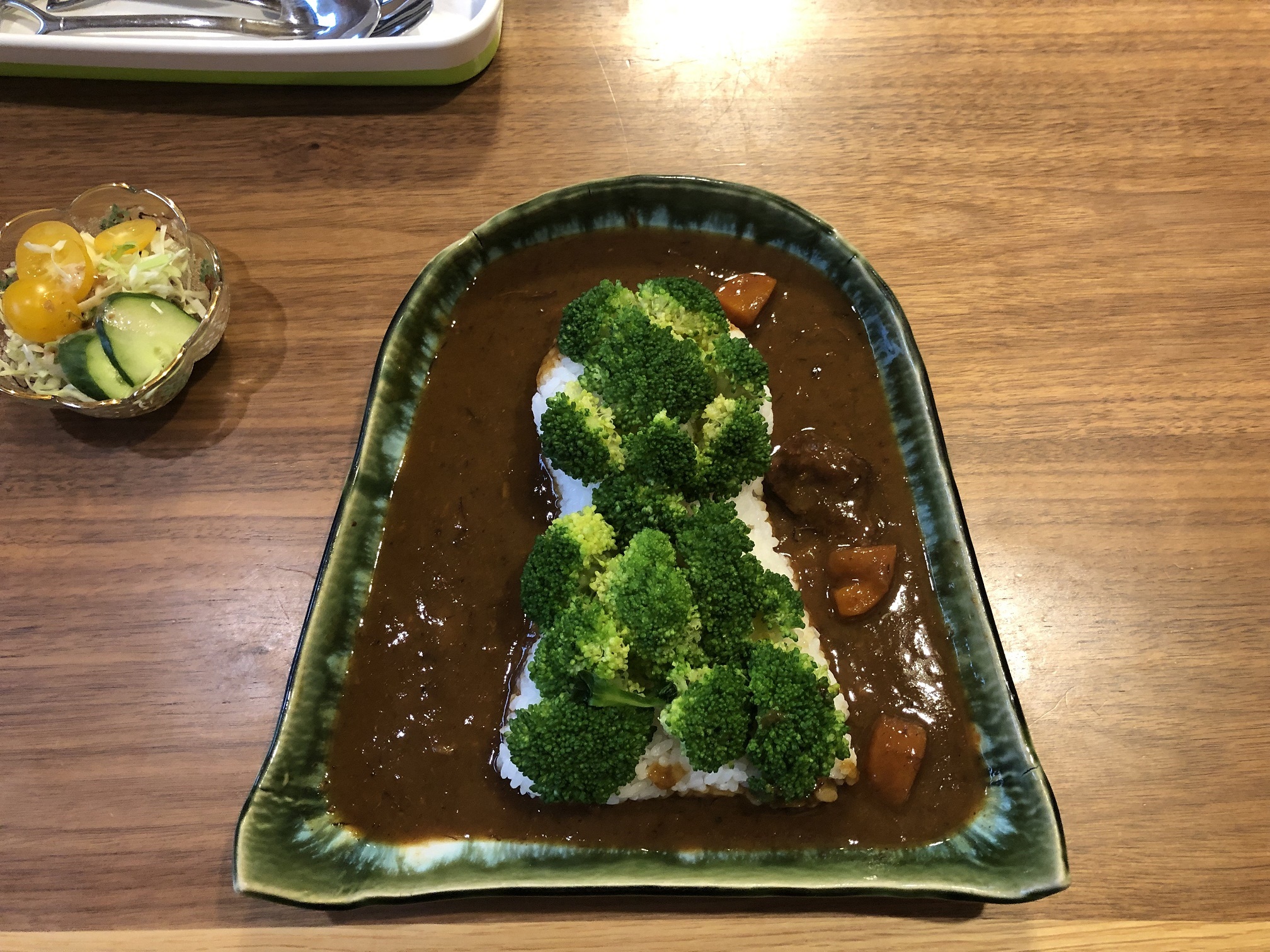 カレーの辛みをブロッコリーが見事に中和してくれます。