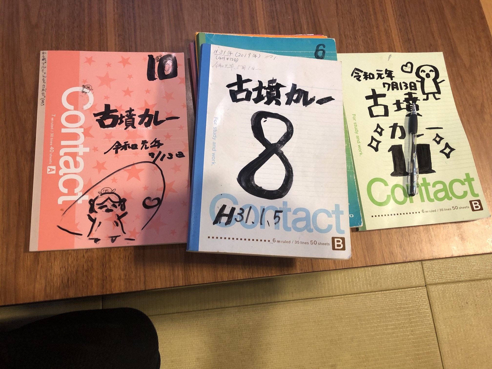 テーブルの上には落書きノートを何冊もあります。