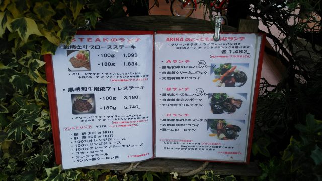 メニューはランチが3種類(A,B,C)、あとはハンバーグ、ステーキランチなど。
