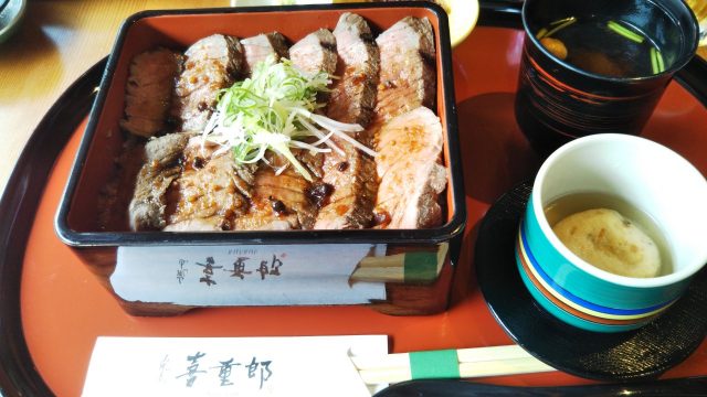何より メインの 「ステーキ重 湯豆腐付」 美味しゅうございます。ハイ!