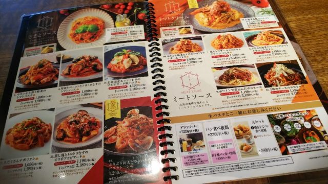 パスタメニュー、種類めっちゃ豊富で迷います(+_+)