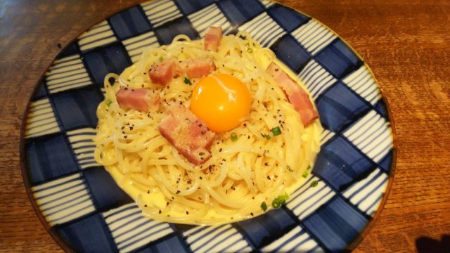 ↑ 厚切りベーコンのカルボナーラ 鎌倉風