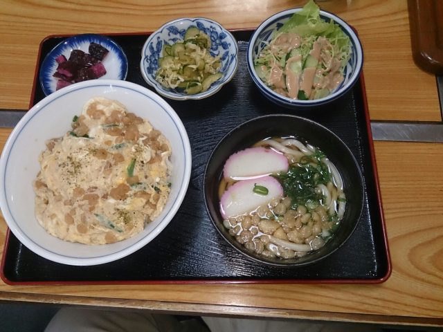 玉子丼・ミニうどん・サラダ・しば漬け・酢の物サラダがついて780円は、結構リーズナブルです。