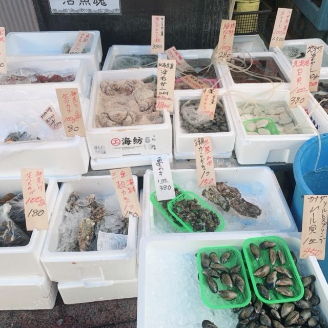 こちらは小田原駅東口徒歩3分程の場所にあるお魚屋さんで、品数がとても豊富!とれたての海産物を販売しているのでとても活きがよくおいしいものばかりです!