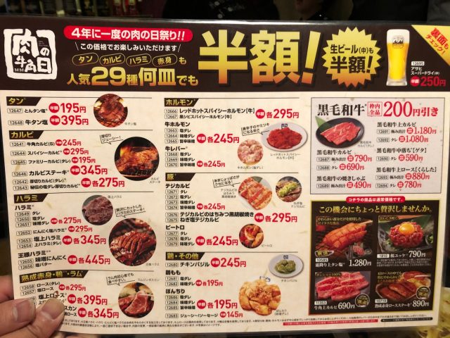 先日、牛角さんが半額キャンペーンを開催中とのことでしたので行ってきました。