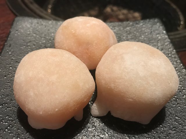 食後のデザートはミカン大福。なかにミカンが丸ごと入っていてめちゃウマです。