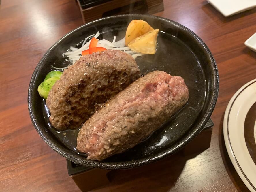 とろける食感ハンバーグということで、ハンバーグはほぼレアの状態で提供され、最後はそれぞれお客さんが自分で好みの焼き加減で仕上げて食べるというスタイルです。