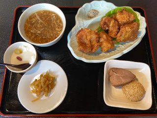 デザートに杏仁豆腐とゴマダンゴがついてる!