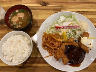 チキンカツ、白身魚のフライ、ハンバーグのセットです!