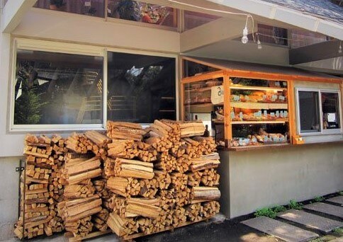 薪窯のあるパン工房なのでお店の外に薪がたくさん積まれてます