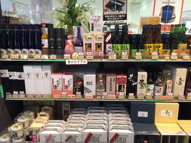 お酒コーナーです。日本酒、地ビール、梅酒、多数ご用意しております。
