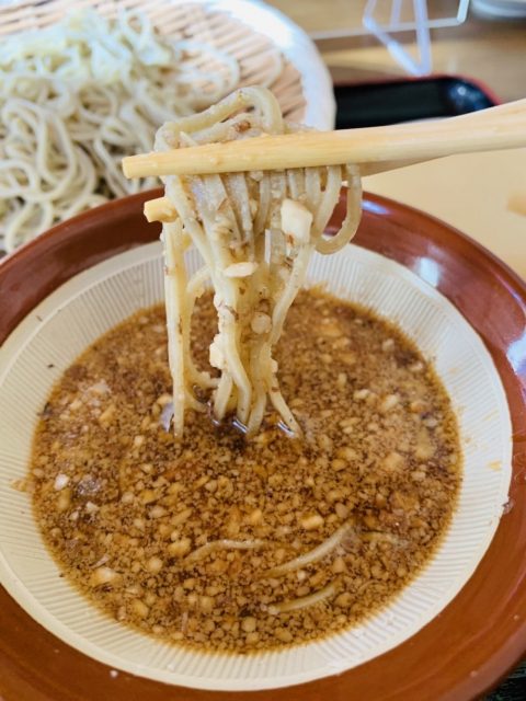 角が立ったキレのある十割そばとオイリーなくるみの旨味がマッチしています。