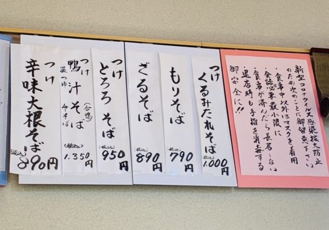 種類こそ少ないものの、某グルメ漫画にも登場した辛味大根をはじめ、くるみだれ、鴨つけとそば好きにはたまらない面々。