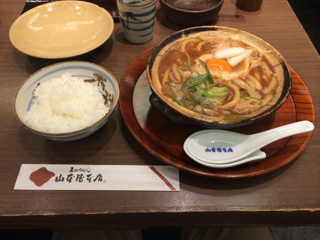 名古屋城観光を終え小腹がすいたので、昼食はこれまた定番味噌煮込みうどんです。(かしわ入り)