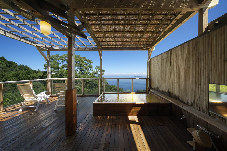 こちらの温泉は源泉かけ流しとなっていて露天風呂からは海も一望出来る様になっています。
