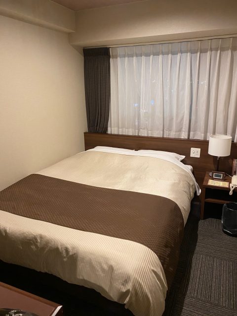 ベッドも大きく、一人で休むには十分な大きさです。