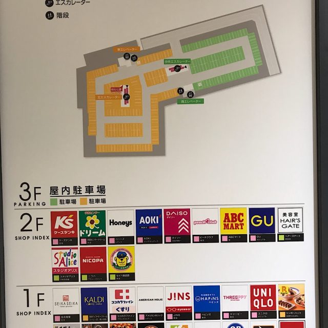 1階と2階に飲食店や、ユニクロ・GU・ハニーズなど服屋さん、