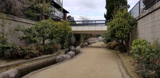 寝屋川市界まで2.8kmの長さがあります。水流はゆるやかで落ち着いた