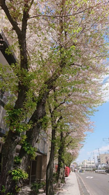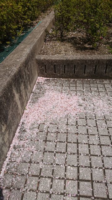 道路には桜のじゅうたんとは言いませんが、散った桜がたまってます。