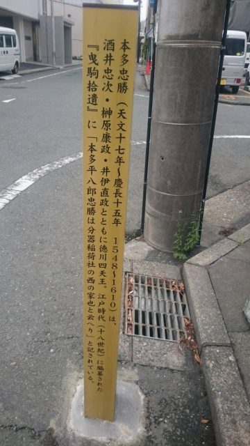 こちらは分器稲荷神社の付近に建てられており、本田忠勝といえば