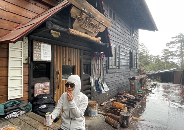 小雨の中おしゃべりしていたらあっと言う間に高見石小屋に到着🏠