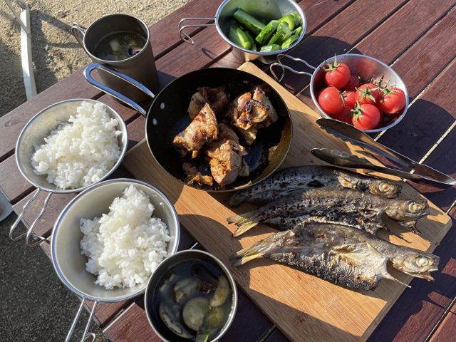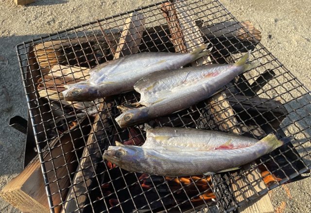 焚き火で焼きました🐡