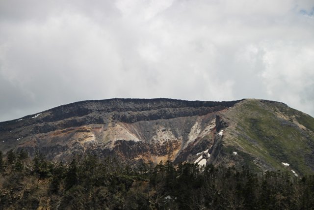 後ろには硫黄岳の爆裂火口がかっこいい!!