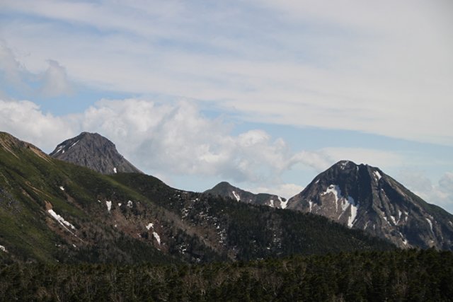 今から目指す根石岳と、その後ろに少ししか見えませんがちょこんと東天狗岳