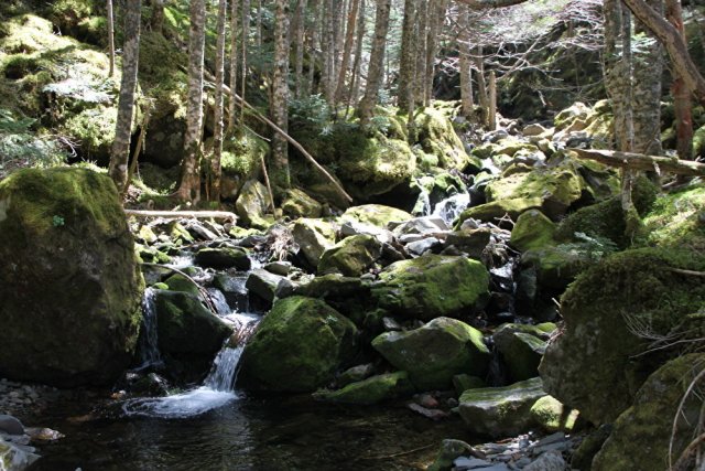 夏沢鉱泉、オーレン小屋を経由し、苔の森を歩いて行くと…