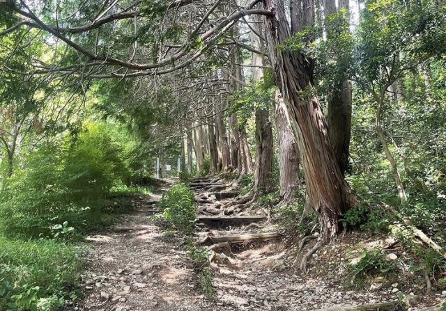 登山道からはなだらかな気持ちの良い木陰の道を登って行くと
