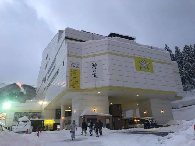 チケット売り場や、レストラン、ショップなどと一緒に併設された神の湯!