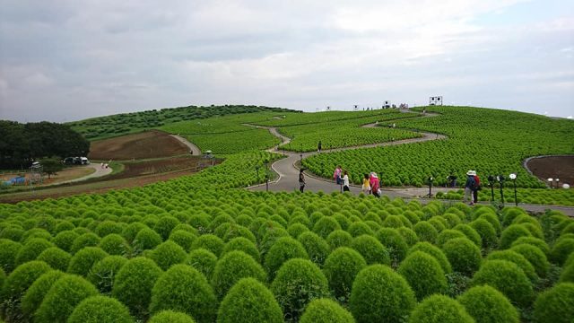 緑のコキアもこれだけ手入れされて数も多いと非常に圧巻で見応えあります