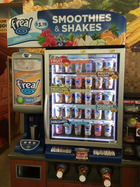 例えば、こんなカラフルなスムージーマシーンがあったりしますので、ガソリンスタンドによるのが楽しくなりますね。