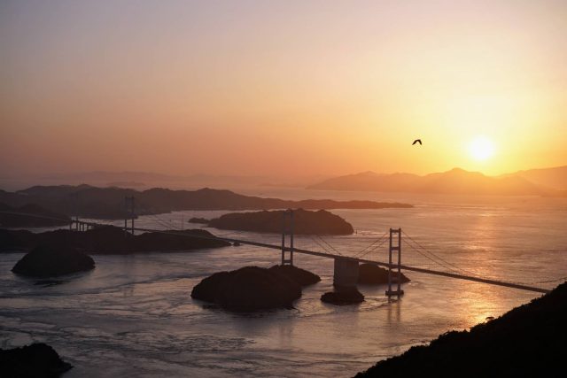 ちょうどこの日は来島海峡大橋がライトアップされる日でした。