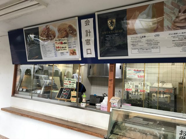 店舗の外ではお食事メニューやソフトクリーム等々が販売されています。