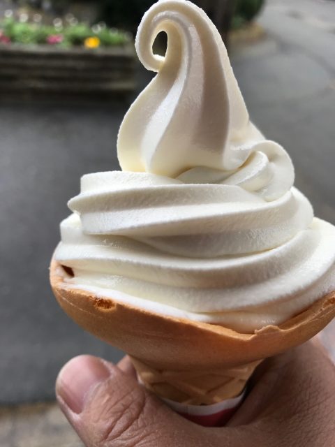 ソフトクリームはバニラやミックス、カカオチョコも売っていましたが、やはりここは牧場オリジナルのフレッシュミルクをオーダーしました。