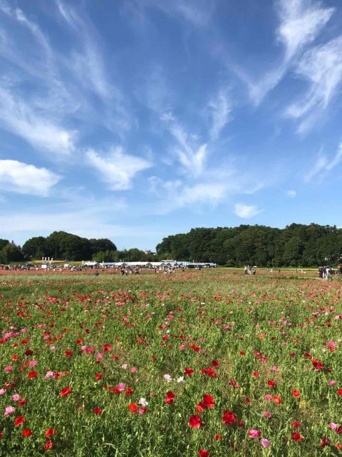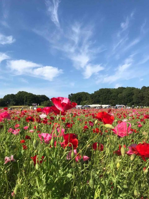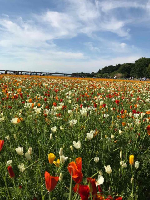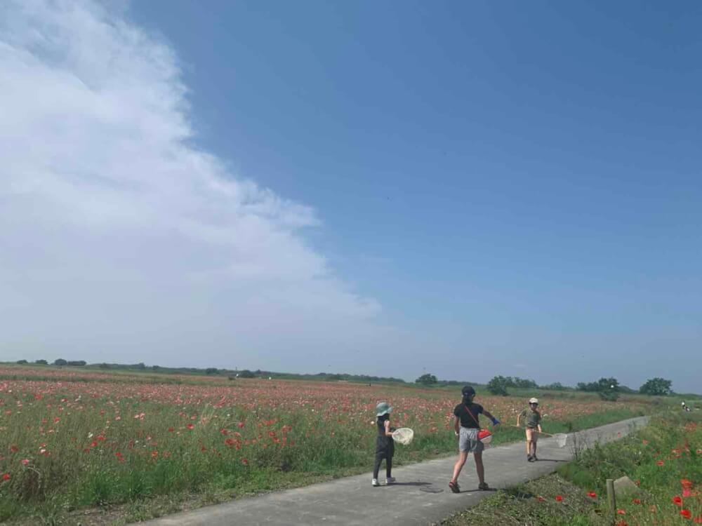春はポピーが広がり、秋はコスモスが堤防沿いに咲きます。