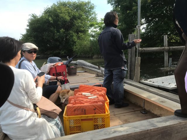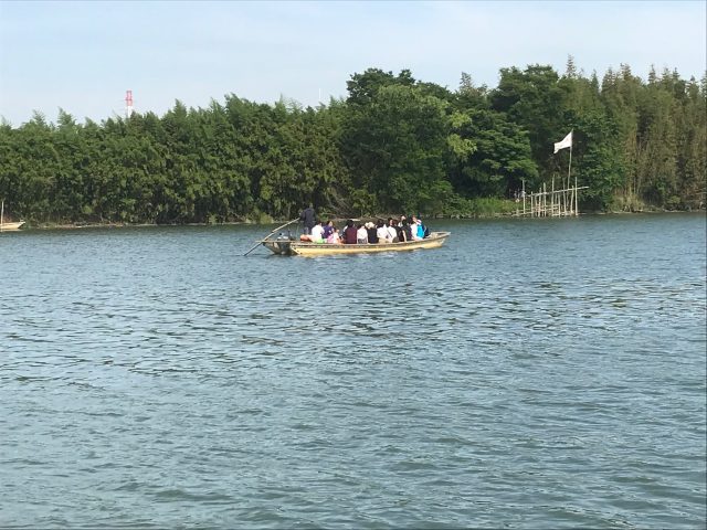 特に発着時間に決まりはないようで、数人集まると船がでます。橋を車で渡ると十数秒でしょうが、ゆったりと船頭さんのこぐ姿や、水面をみたり、写真を撮っているうちに対岸が見えてきます。