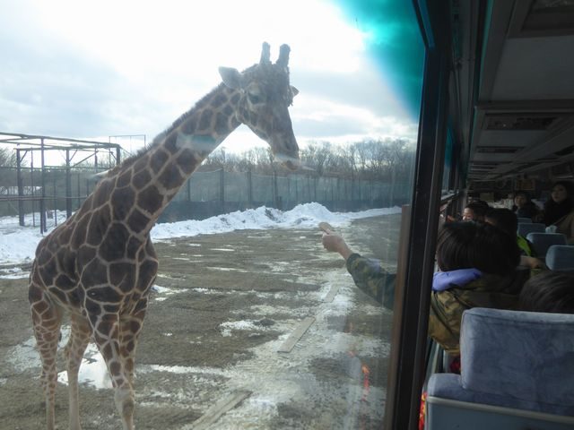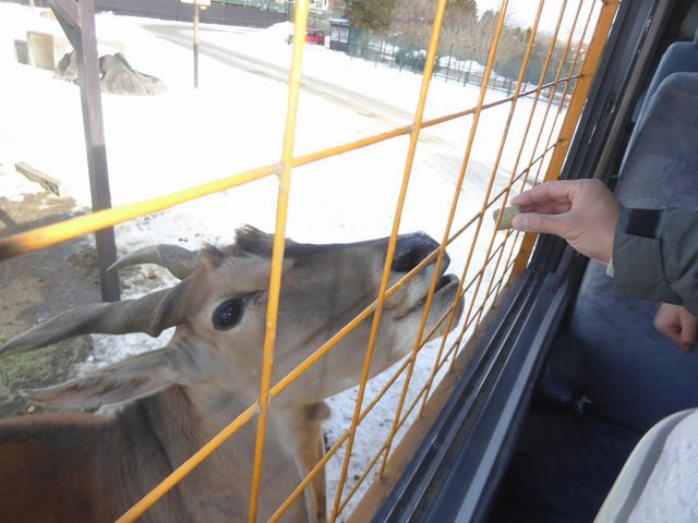 バスの窓をあけて、直接エサをあげます。これが楽しい!