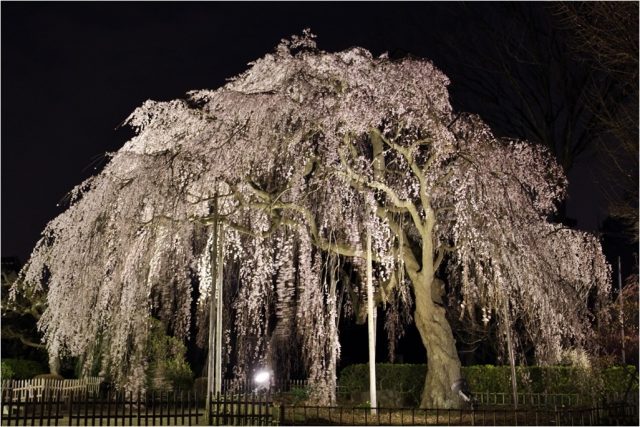 開花の季節になると、夜はライトアップされ、美しい夜桜も幻想的ですばらしいです。