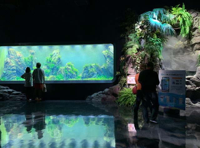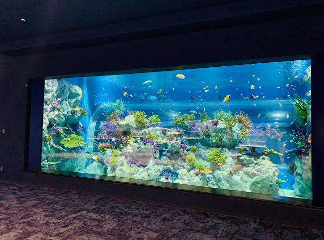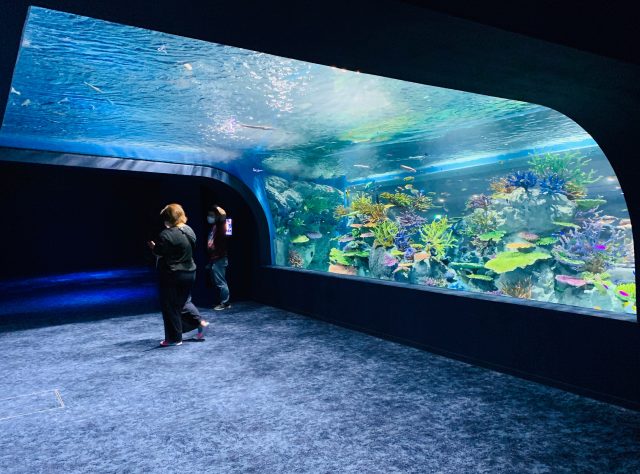見る場所によっては映像や空間演出があり🐠水槽も本物なのに映像と見間違えてしまうくらいにとてもキレイですごく感激しました✨(*´꒳`*)