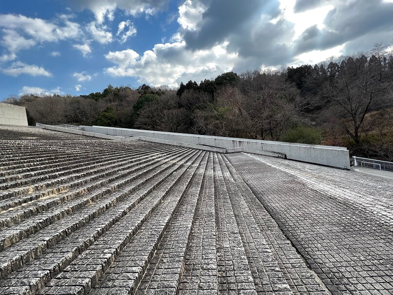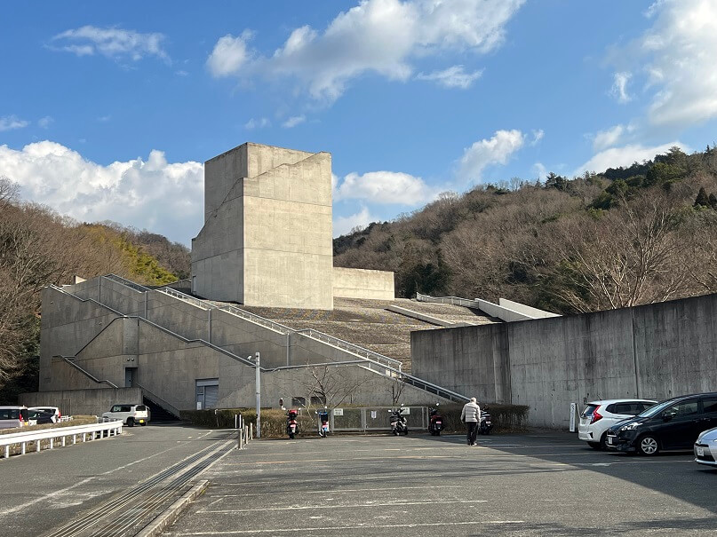 「黄泉の塔」がそびえる階段状の建物は安藤忠雄氏設計の博物館です。