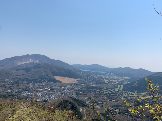西側から南東側にかけて富士山や南アルプス、金時山より箱根峠方面へ伸びる古期外輪山、箱根山最高峰である中央火口丘の神山と中腹に広がる大涌谷の噴煙地などが望見でき、