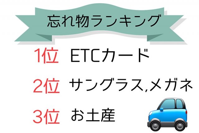 ガッツのコラム 車のことならガッツにお任せ!車に関する便利でお得な情報を(ほぼ)毎日お届けします! 2022年4月5日 レンタカーの忘れ物ランキング! 皆様こんにちは。ガッツレンタカーFC本部です。 ガッツレンタカーで多い忘れ物をランキングにしました! お帰りの際は忘れ物がないか、ご確認下さい。 ETCカードお土産サングラスメガネレンタカー忘れ物忘れ物ランキング