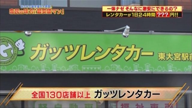人気コーナー世の中の最安値を大調査する「最安値マン」でガッツレンタカーのありえへん価格が今回、ご紹介いただきました。